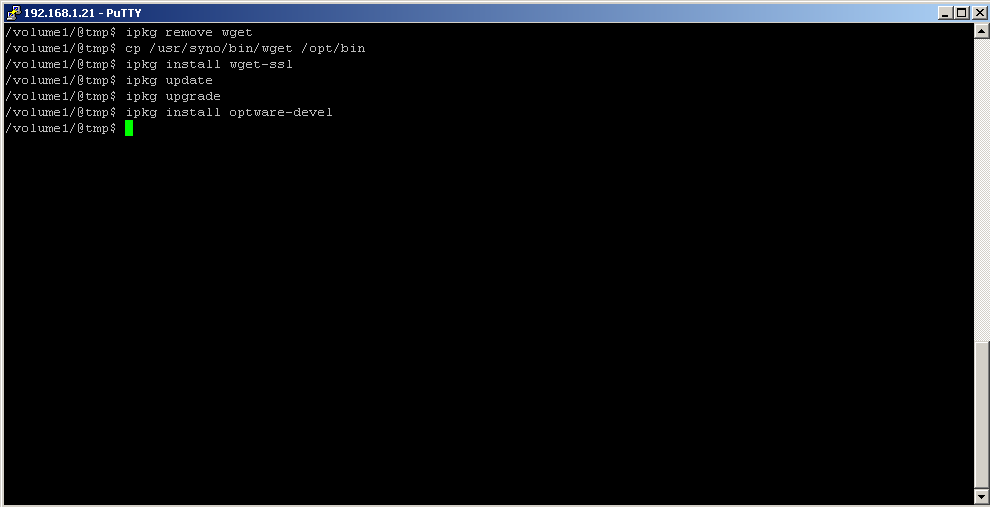 3 – Dalla console, eseguire il seguente comando (Supponendo che hai copiato il file per “pubblica”) : ipkg installare /volume1/public/openssl_0.9.8p-1_arm.ipk